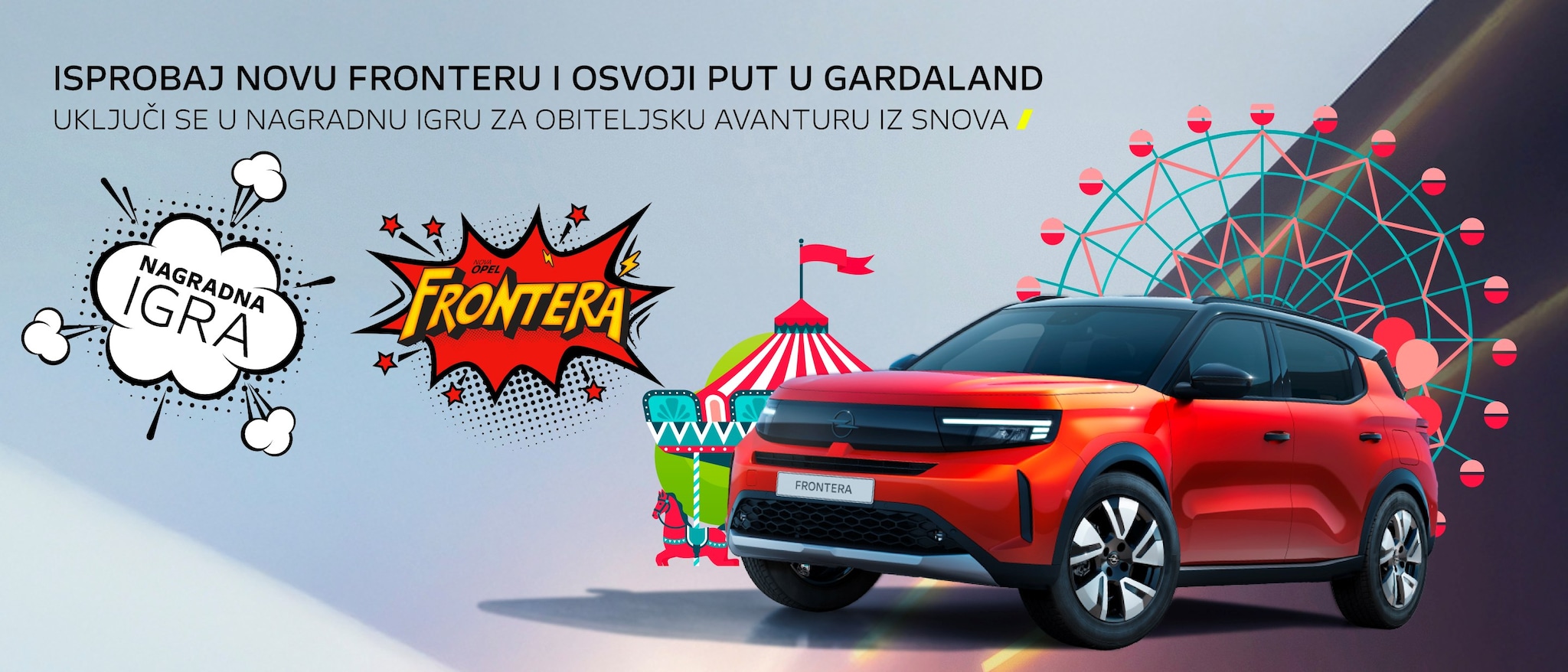 - Nova Opel Frontera – upoznaj je izbliza, provozaj je i uđi u nagradnu igru: možda baš ti osvojiš put u Gardaland ili jedan od 10 Opel poklon paketa!